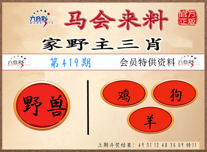 0418期 家 【狗鸡牛】 野 【虎龙蛇】开 ??????? |
