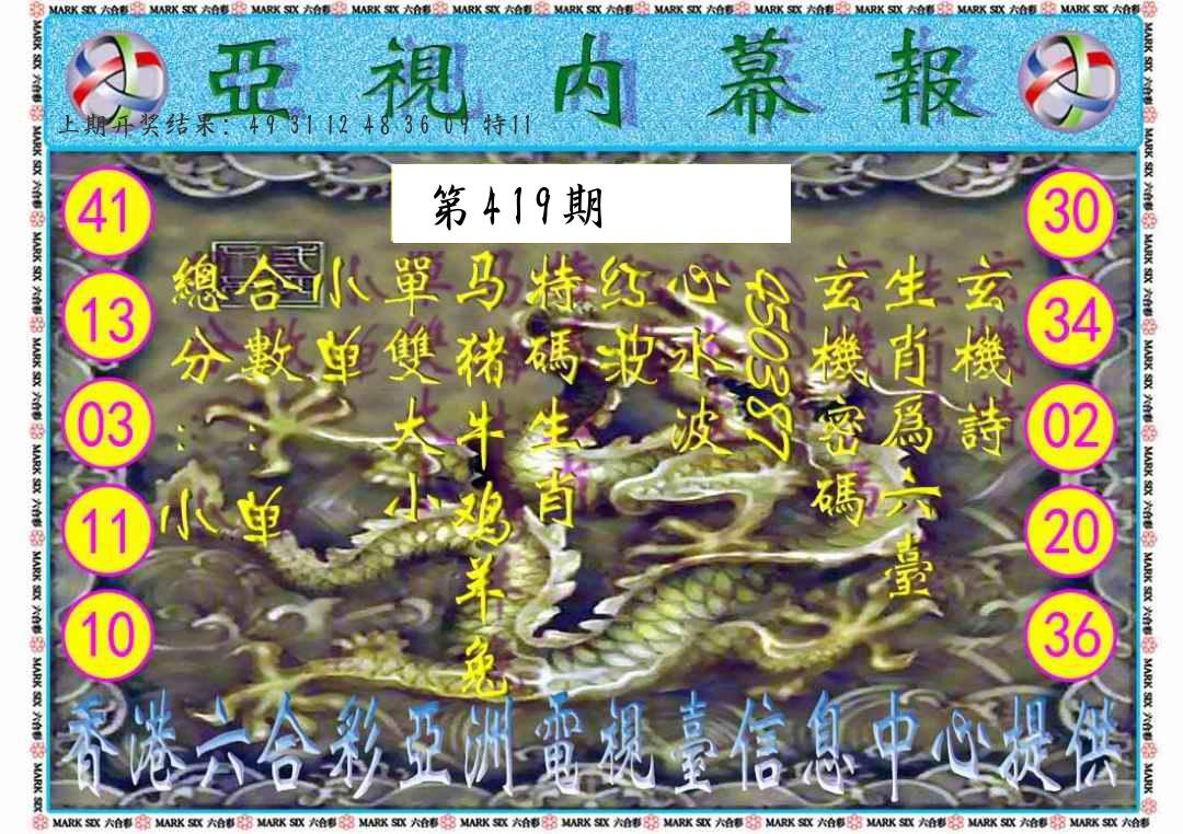 0411期绝杀一波 【绿波】 开 39龙错 |